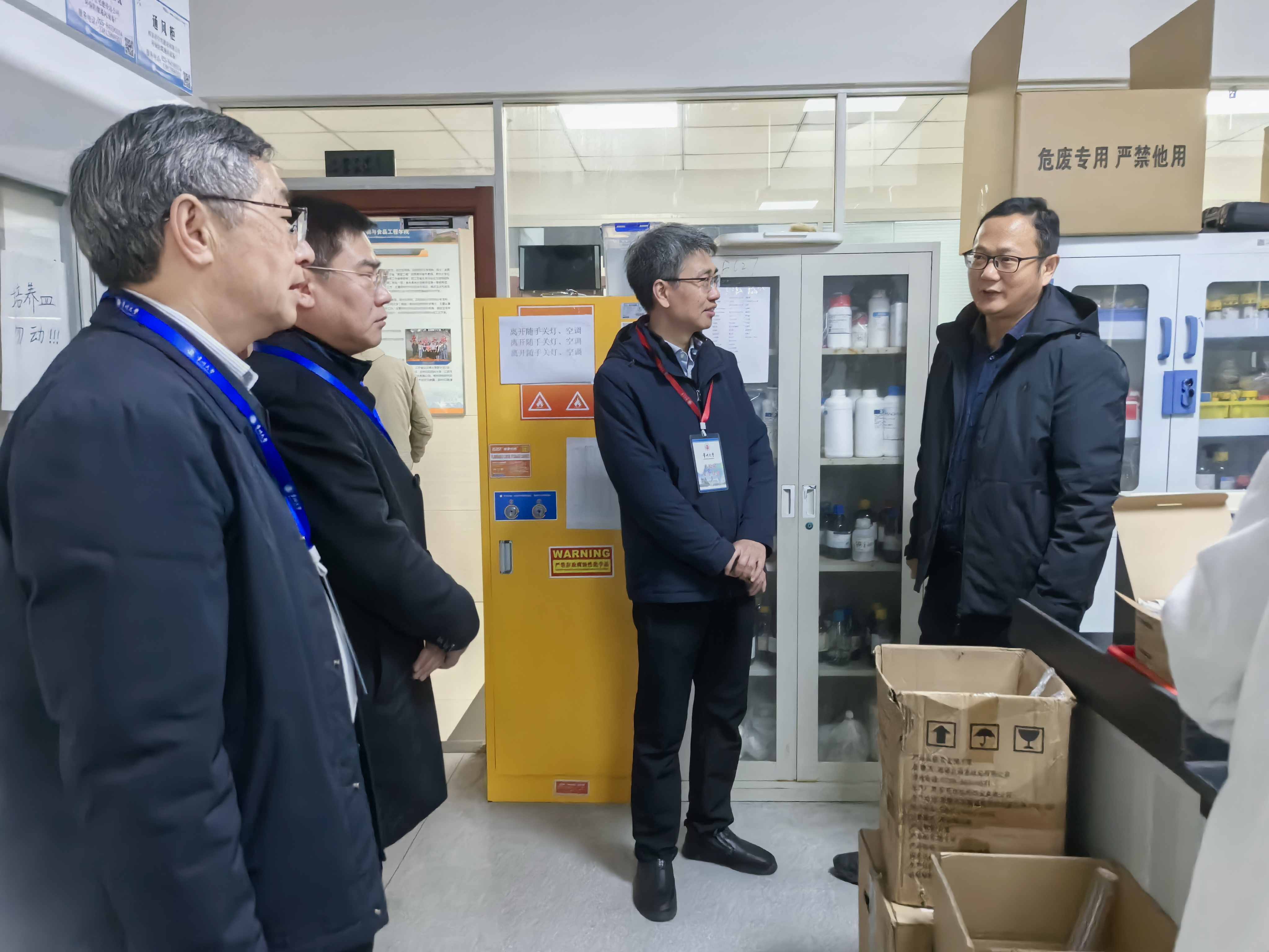 本次督察分六组,由各组组长统筹协调分组情况与检查进度,确保督察工作高效推进。督察范围覆盖科教城校区各类实验室,重点围绕安全设施运行状态、危险化学品管理两大核心内容展开:详细检查了应急喷淋、洗眼装置、消防器材、气体报警系统等安全设施的完好性与可操作性;严格核查危化品储存分类、防爆柜使用、双人双锁管理、废物处置等合规情况,同时对实验室用电安全、通风系统运行、应急处置预案等基础安全管理工作进行全面排查。