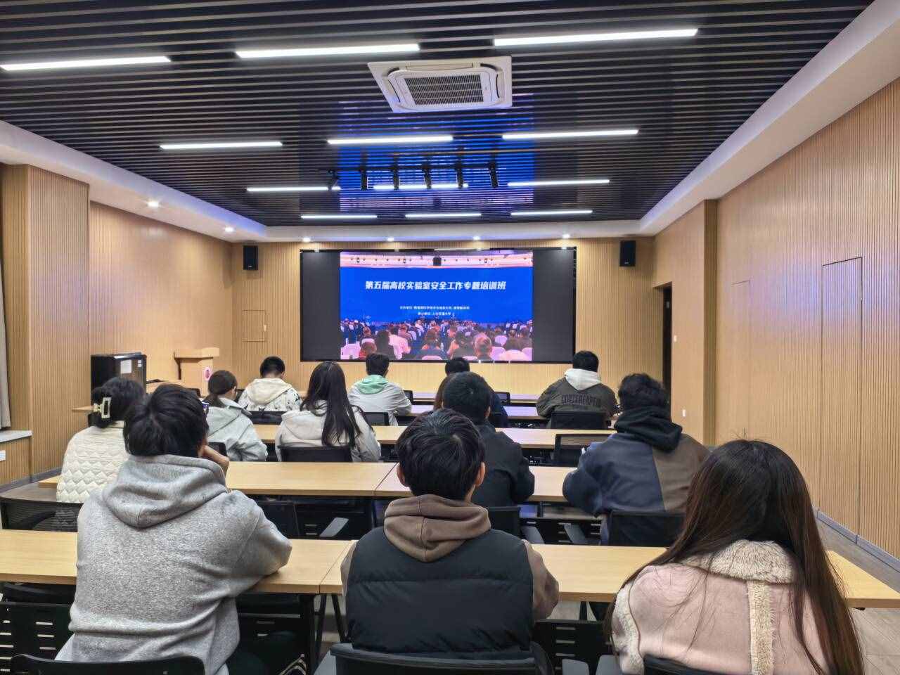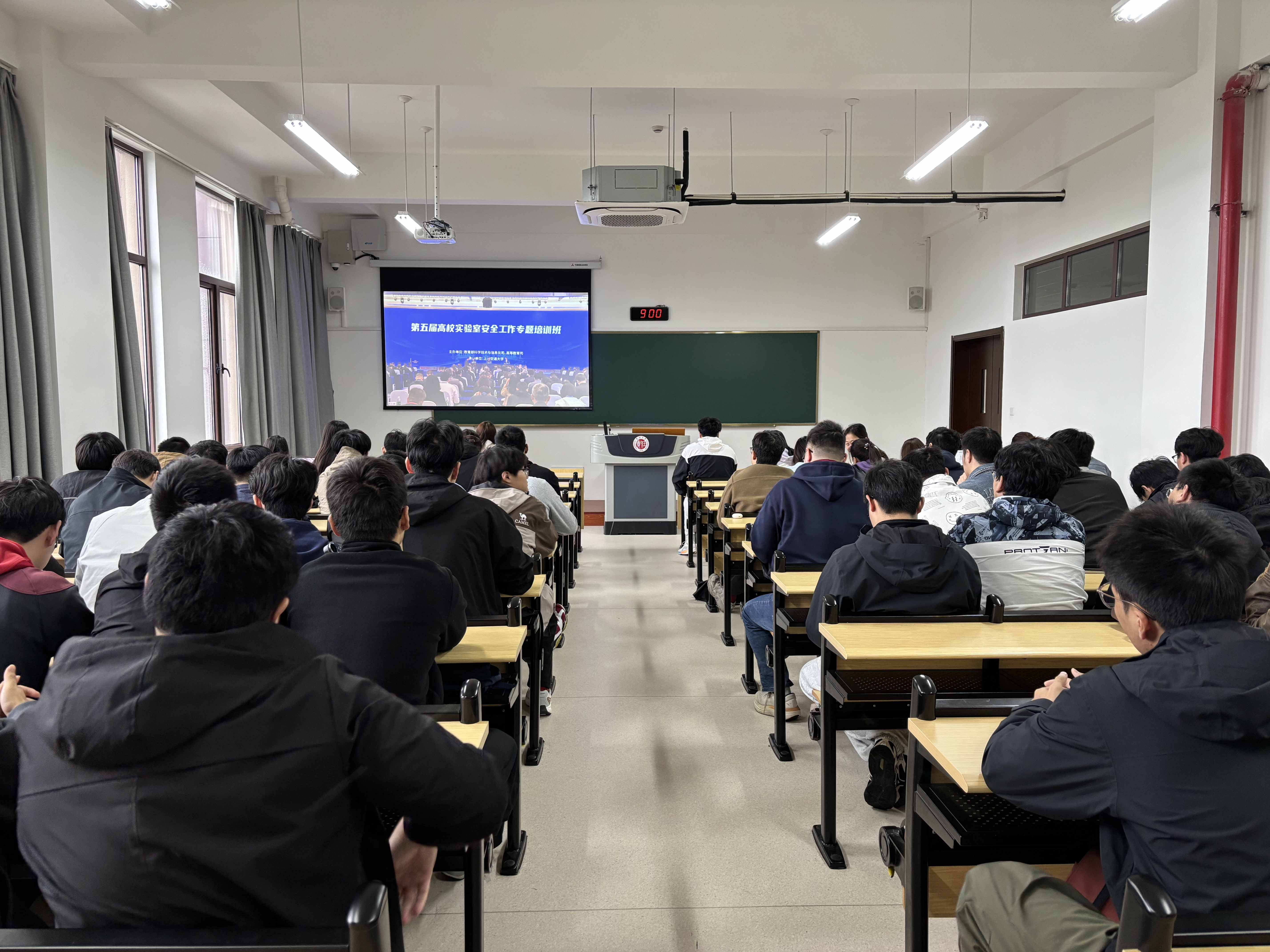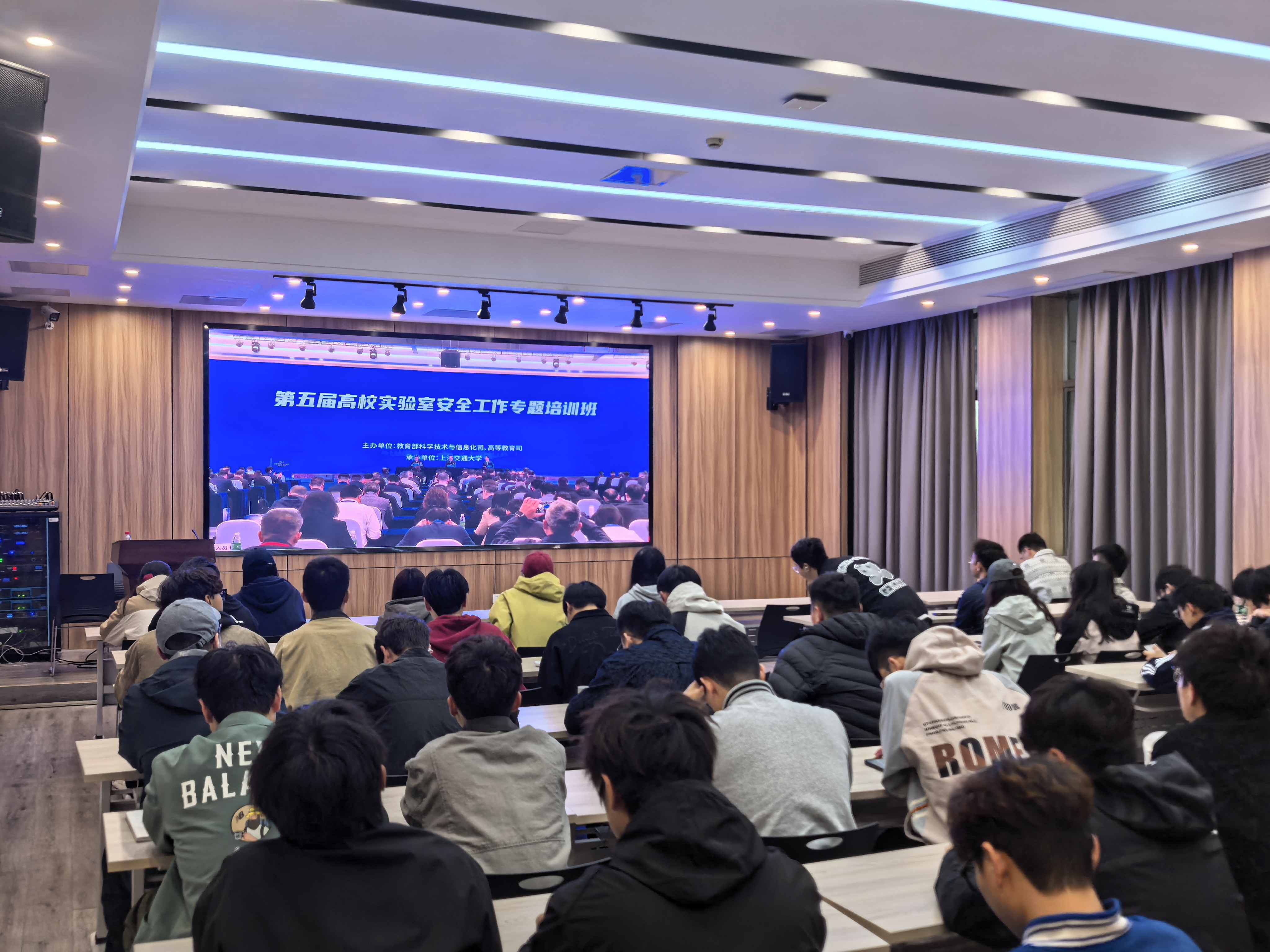 4月23日上午,教育部科学技术与信息化司、高等教育司召开2026年高校实验室安全工作培训会。实验室建设与管理处组织各二级单位分管实验室安全负责人、实验中心主任、院级实验室安全管理员、义务消防员等近70人,在文正楼第四会议室学校主会场集中观看直播培训,另有1000余名师生在各二级单位分会场同步收看会议。